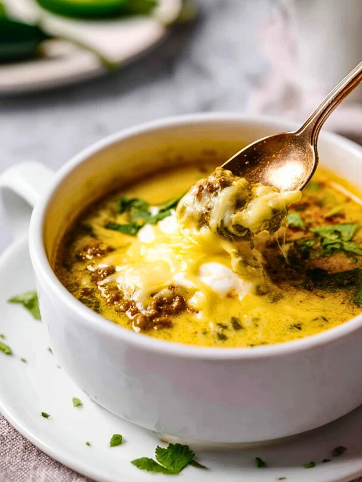 Diese Chili Relleno Suppe bringt den beliebten Geschmack gefüllter Chilis in eine wunderbar cremige, löffelbare Form. Geröstete grüne Chilis, geschmolzener Käse und eine fein abgestimmte Würze verschmelzen zu einer herzhaften Suppe, die perfekt für gemütliche Abende ist.
