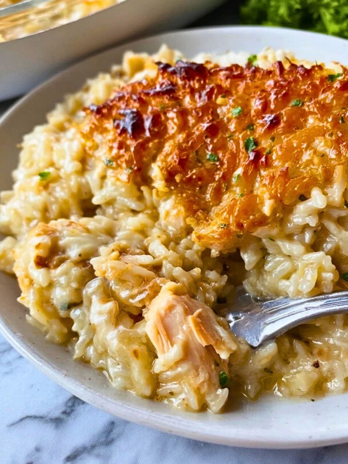 Zartes Hähnchenfilet und sämiger Reis werden in einer aromatischen Sauce gemeinsam im Ofen gebacken. Einfach zubereitet, wunderbar cremig und perfekt für die ganze Familie – ein echtes Wohlfühlgericht!