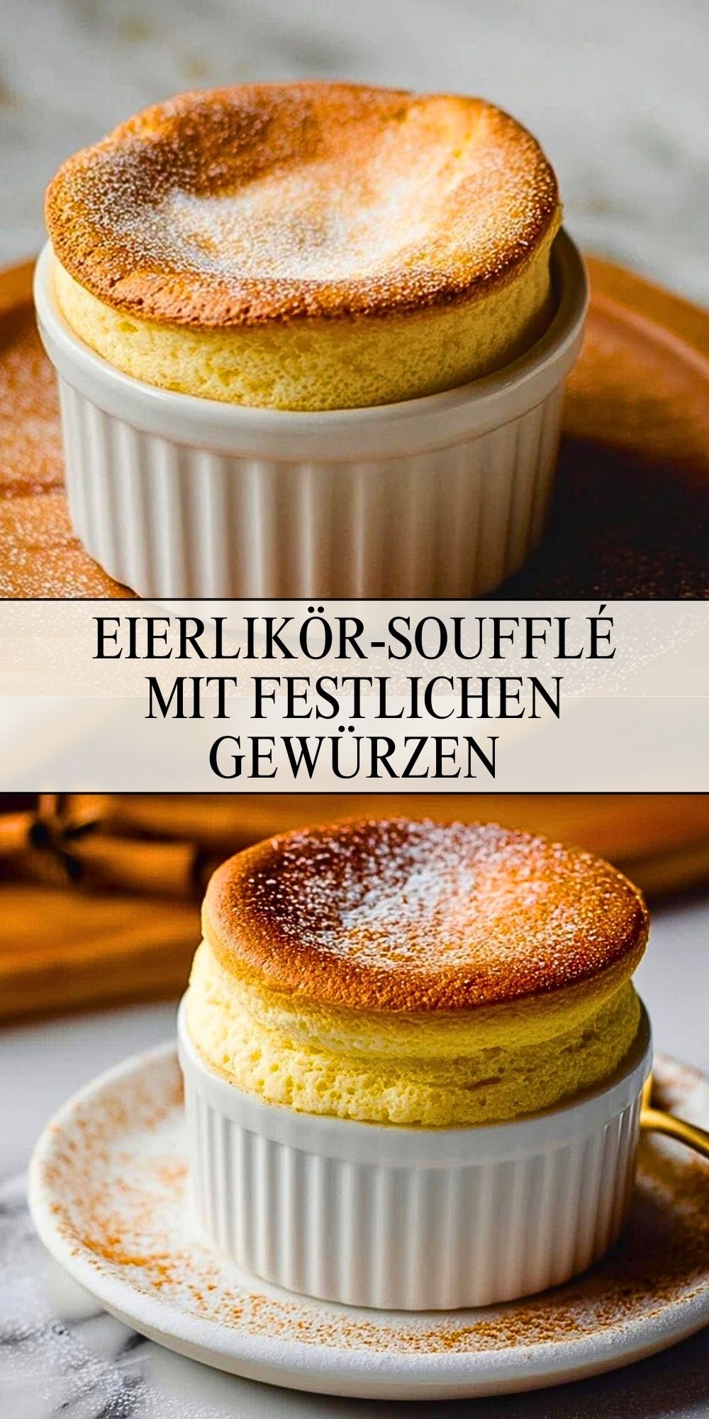 Ein herrlich luftiges Soufflé mit feinem Eierlikör und einer festlichen Gewürznote aus Zimt und Muskat. Perfekt als Dessert für besondere Anlässe oder die Feiertage – am besten frisch und noch warm genießen!