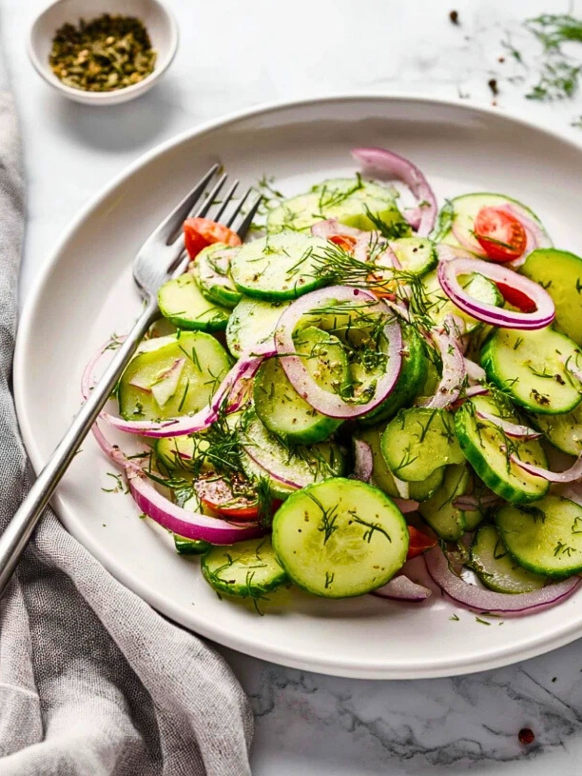 Ob zum Picknick, als Teil eines Buffets oder einfach als schneller Genuss zwischendurch: Ein einfacher Gurkensalat bringt immer Abwechslung und Leichtigkeit auf den Tisch. Das Beste daran: Du kannst das Grundrezept je nach Geschmack ganz unkompliziert variieren – zum Beispiel mit frischen Kräutern, Zwiebeln oder etwas Schmand für eine cremigere Variante.