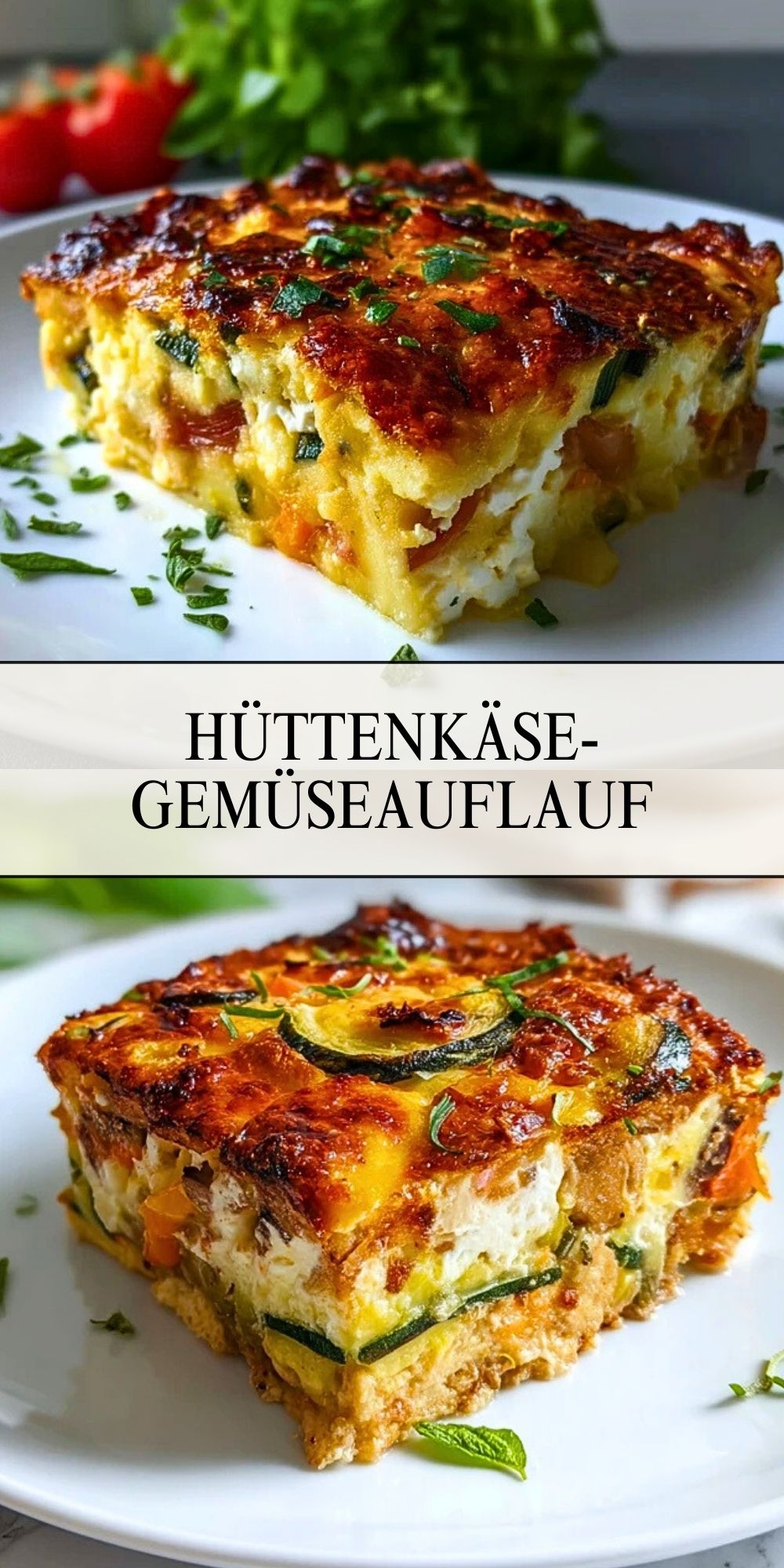 Besonders praktisch: Der Hüttenkäse sorgt für eine Extraportion Protein, bleibt dabei aber angenehm leicht. Außerdem kannst du das Gemüse ganz nach Saison und Vorrat variieren, sodass nie Langeweile aufkommt. Und das Beste? Alles kommt unkompliziert in eine Form und wird im Ofen überbacken.