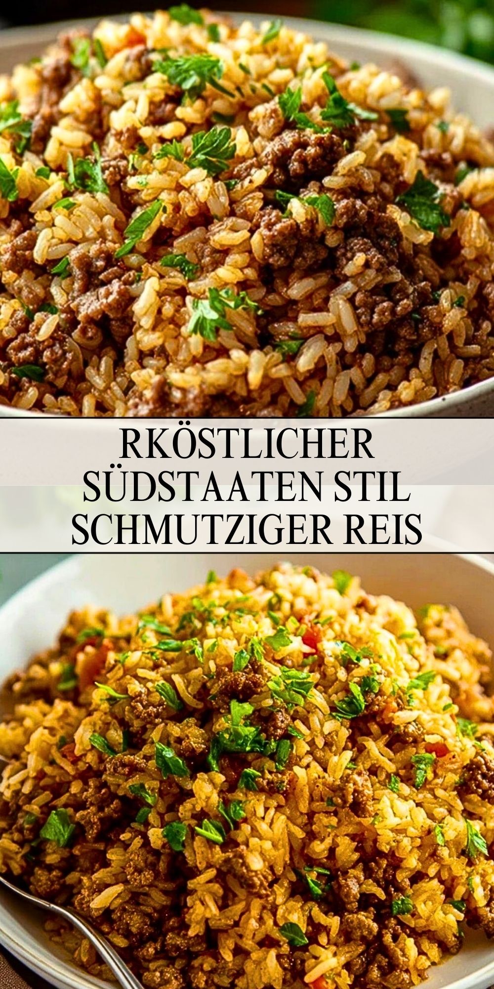 Köstlicher Südstaaten Stil Schmutziger Reis ist ein würziges Reisgericht aus Louisiana mit gebratenem Hackfleisch, aromatischem Gemüse und typischer Cajun-Würze. Perfekt als herzhaftes Hauptgericht oder als Beilage für deine nächste Soulfood-Session!