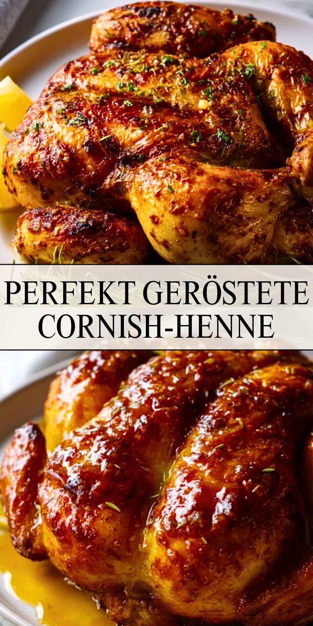 Die perfekt geröstete Cornish-Henne überzeugt mit zartem Fleisch, knuspriger Haut und herrlich aromatischen Kräutern. Ein einfaches, festliches Gericht für besondere Anlässe oder das Sonntagsessen!