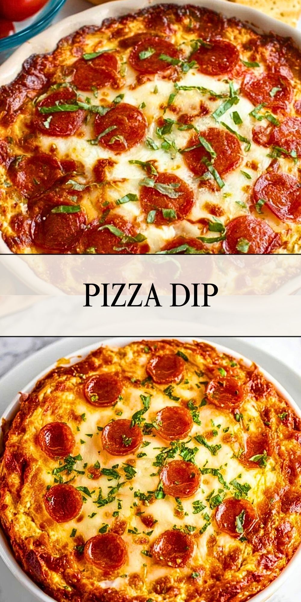 Belege die Oberfläche mit Mini-Pepperoni oder dünnen Salamischeiben. Schiebe die Form in den vorgeheizten Ofen und backe den Pizza Dip etwa 18–22 Minuten, bis der Käse geschmolzen ist und die Oberfläche leicht bräunt und blubbert.