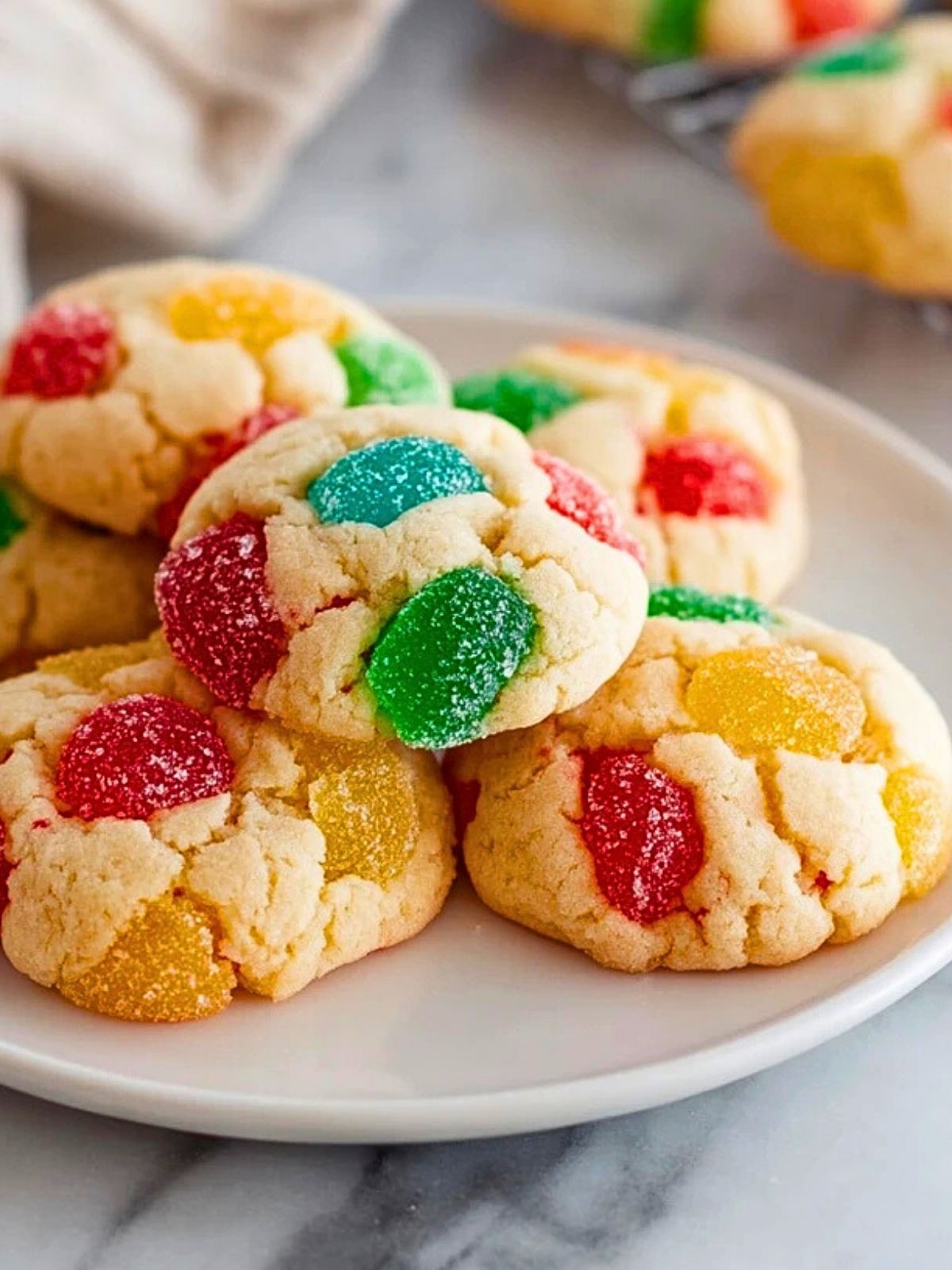 Wer kennt sie nicht aus Kindheitstagen: Die kunterbunten Gummibärchenkekse, die auf keinem Plätzchenteller in den 80ern und 90ern fehlen durften? Dieser Klassiker ist nicht nur hübsch anzusehen, sondern begeistert mit einer knusprigen Hülle und dem süßen Fruchtkern. Gummibärchenkekse sind das perfekte Gebäck für alle, die es bunt, fröhlich und unkompliziert lieben – und machen sich besonders gut auf jedem weihnachtlichen Kaffeetisch.