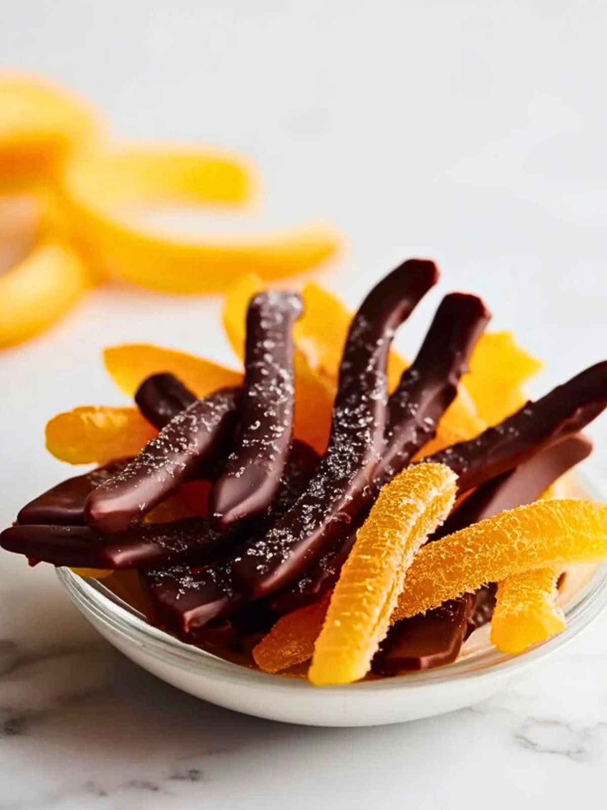 Und lass mich in den Kommentaren wissen, wie deine Version geworden ist. Hast du die Schalen extra dünn geschnitten oder eine besondere Schokolade verwendet? Vielleicht mit Chili experimentiert?