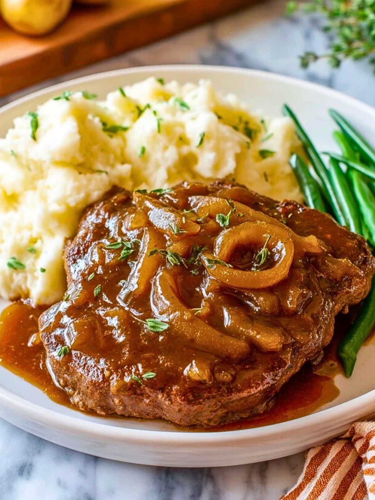 Zartes Schweinefleisch trifft auf eine herzhafte, sämige Zwiebelsoße: Dieses Gericht ist ein echter Klassiker der deutschen Hausmannskost. Die Kombination aus saftigem Fleisch und der würzigen Soße, serviert mit Kartoffelpüree und grünen Bohnen, sorgt für echten Wohlfühlgeschmack wie bei Oma zu Hause. Das Rezept eignet sich perfekt für ein gemütliches Sonntagsessen oder als deftiges Familiengericht unter der Woche.